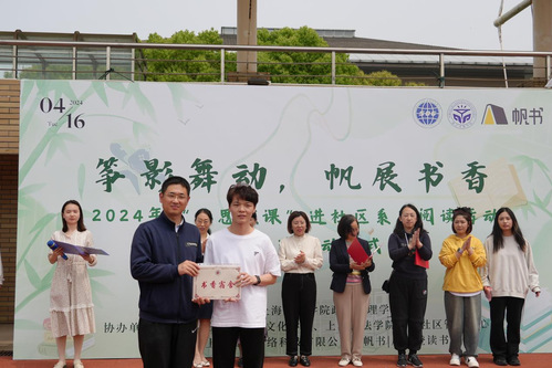 随后,语言文化学院党总支副书记魏洲阳为社区楼宇学生代表赠送“书香宿舍”门贴;帆书张旭坤为留学生代表赠送阅读纪念品。以此激励同学们用阅读充实生活、点亮校园。