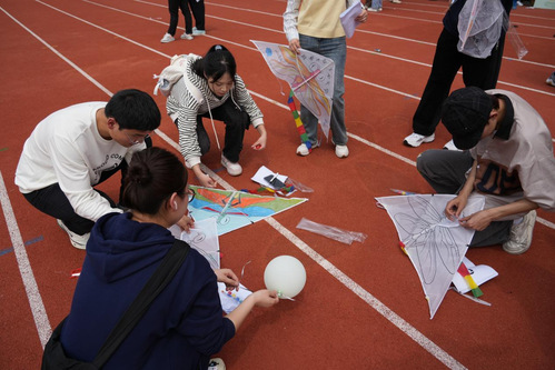 启动仪式结束后,各位同学开始现场进行风筝彩绘和放飞。有的用画笔进行绘画,为风筝增添了亮丽色彩,有的在风筝上写下了自己喜欢的书籍金句,大家发挥着天马行空的想象力创造了属于自己的风筝。