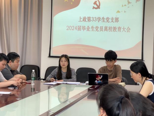 为进一步推进党纪学习教育,加强毕业生党员的理想信念教育,上政第33学生党支部于2024年6月12日开展“初心如磐守本色,担当使命行正道”2024届毕业生党员离校教育活动。