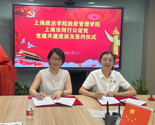 政府管理学院教工第一党支部书记周顺等党员教师与闵行公证处党支部书记褚莹就党建共建合作进行了热烈讨论,提出双方可以通过举办党课讲座交流、支部组织生活共建等方式开展党支部共建活动。双方表示以本次共建协议为基础加强我校基层党组织与闵行公正处党支部的深度合作交流,为今后开展多样化的党建共建创新提供契机。