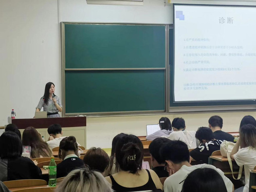 首先,青浦区精神卫生中心的心理科科长陶冬芳主任以其深厚的专业功底和丰富的临床经验,为在场师生带来了一场题为《创伤及应激相关障碍》的精彩讲座。陶主任深入浅出地解析了创伤后应激障碍(PTSD)等心理疾病的概念、要素、临床表现、诊断及有效的治疗,强调了心理健康在现代社会中的重要性,并分享了多个实际案例,帮助同学们丰富了该方面的知识也充分解答了同学们的困惑。