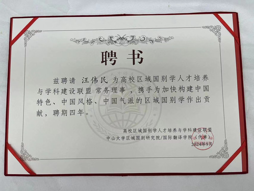 在本届年会期间,高盟还聘请了我校政府管理学院院长、东北亚研究中心执行主任、上海市“一带一路”安全合作与中国海外利益保护协同创新中心常务副主任汪伟民教授为高校区域国别学人才培养与学科建设联盟常务理事,表彰其为中国区域国别学人才培养和学科建设做出的贡献。