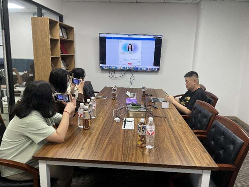 2024 年 9 月 25 日,新利18官方客服政府管理学院劳动与社会保障专业师生前往上海近屿智能科技公司进行深入调研。王慧博老师带领劳动与社会保障专业的欧阳瑞鸿、李慧媛、李甜甜三位学生与上海近屿智能科技公司创始人方小雷围绕 AI 招聘面试方法进行了充分交流。方总亲自为师生们演示了“AI得贤招聘官”全智能化招聘的全过程,并详尽地解答了大家的疑问。此次调研活动极大地开拓了师生们的视野,使大家领略到了全新的招聘理念。