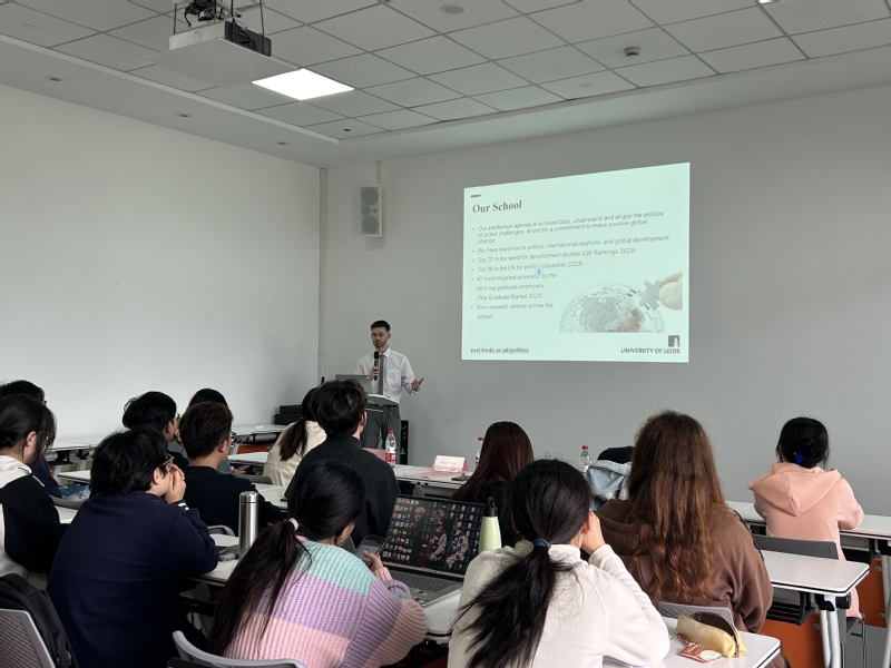 10月21日中午,由政府管理学院和国际交流处联合开展的利兹大学政治学、社会学“3+1”硕士项目宣讲会在成德楼就业服务中心举办。本次宣讲会由利兹大学国际办公室的国际合作官员Jason Neal主讲,政府管理学院辅导员鲁冰清主持,国际交流处刘灵老师列席讲座,本年度有意申请利兹大学硕士项目的学生参会。
