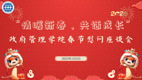 元启新程,旦逢美好。为把思政温暖送进社区,2025年1月2日中午,政府管理学院在社区活动室举行了“情暖新春,共话成长”新年慰问座谈会。政府管理学院党委书记姚善英、副书记闯晓燕、学工部生活园区管理中心主任于腾云、政府管理学院辅导员及受资助学生代表参加了会议。