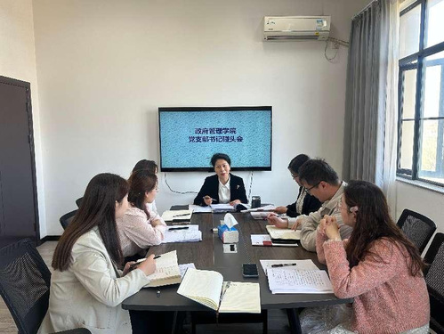 为深入学习重要文件精神,全面部署党建重点工作,进一步夯实基层党组织建设,提升党建工作质量,政府管理学院于3月25日上午召开党支部书记碰头会,本次会议由党委书记姚善英主持,七位党支部书记参加会议。