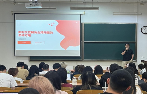 政府管理学院讲师王晓笛为本期培训班讲授第二节专题党课《新时代党解决台湾问题的总体方略》,指出新时代党解决台湾问题的总体方略内涵丰富、逻辑严密、系统完备,深刻回答了新征程推进祖国统一的根本保证、历史方位、战略思路、大政方针、政治基础、实践途径、根本动力、必然要求、外部条件、战略支撑等重大理论和实践问题,为新时代解决台湾问题、实现祖国完全统一指明了方向。强调新时代党解决台湾问题的总体方略是习近平新时代中国特色社会主义思想的重要组成部分,是我们党对台大政方针的继承发展和集大成,是我们党为祖国统一奋斗百年历史的智慧结晶,是实现统一的认识论和方法论,升华了我们党的国家统一观,标志着我们党的国家统一理论更加成熟、更加定型。