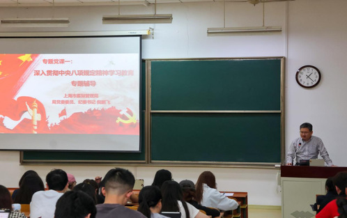 上海市监狱管理局局党委委员、纪委书记倪鹏飞以《深入贯彻中央八项规定精神学习教育》为题,讲授本期培训班的第一节专题党课。倪鹏飞指出,深入贯彻中央八项规定精神学习教育是巩固深化主题教育和党纪学习教育成果、纵深推进全面从严治党的重要举措,是密切党和群众联系、巩固党的执政基础的必然要求。党的十八大以来,以习近平同志为核心的党中央从制定落实中央八项规定破题,党风政风社会风气持续好转,呈现“一子落而满盘活”的效果。作风建设具有顽固性反复性,绝不能有松劲歇脚的心态,必须坚持学查改一体推进,做到在学中知敬畏,在查中找差距,在改中见实效。青年学子正处于孕穗拔节的成长关键期,必须学深悟透中央八项规定及其实施细则精神的核心要义,时刻保持清醒头脑,真正做到以案为鉴,将其作为立身立言的标尺准则,扣好职业生涯廉洁“第一粒扣子”,筑牢拒腐防变的思想防线。