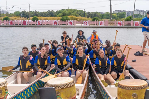 菖蒲沁芳,粽香满园。在端午佳节来临之际,为弘扬中华传统节日文化,促进中外文明互鉴。受青浦区盈浦街道新时代文明实践分中心邀请,近日我校学(研)工部(处)、政府管理学院组织30余名来自俄罗斯、哈萨克斯坦、蒙古等国家的留学生,走进青浦区盈浦街道天恩桥村龙舟基地,开展"感知中国·我们的端午"文化体验活动。通过龙舟竞技、香囊制作、粽艺传承三大特色活动,让留学生们在桨声粽香中深度感受中华传统文化的魅力。