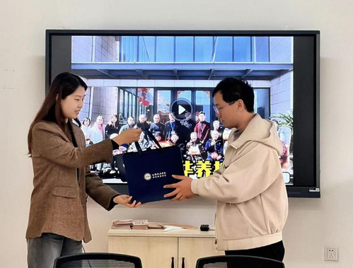 吕静怡向养护院详细介绍了学校和学院在学科建设、人才培养模式创新及科研成果转化等方面的最新进展,表达了学院积极推动产教融合、协同育人的明确意愿。她强调,希望通过实地走访,进一步精准把握行业动态与用人需求,不断优化教育教学环节,增强学生的实践能力与社会适应力。活动最后,吕静怡代表学院向养护院赠送了精心准备的纪念品,对院方在此次交流中给予的支持表示衷心感谢,并表达了建立长期稳定合作关系的意愿。
