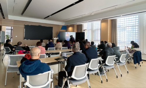 座谈交流中,九里亭街道社区学校王玉良老师详细介绍了学校办学特色与发展规划,重点展示了“九亭云课堂”线上学习平台、老年数字技能培训、社区公益服务等核心业务,以及在课程开发、基层服务、政企资源对接等方面的优势。该校在助老智能培训、社区治理相关课程建设等领域的实践经验,与政府管理学院社会学、社会工作等专业人才培养方向高度契合。