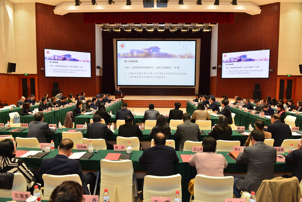11月19日,我校本科教学工作审核评估正式迎来专家进校考察阶段。评估专家见面会当天上午在上合培训基地207会议室举行。评估专家组组长、上海市教委原副主任、市教育评估院原院长王奇,湖南师范大学副校长蒋新苗,上海大学副校长聂清,甘肃政法学院副校长魏克强,上海理工大学原副校长田蔚风,华东政法大学教务处处长王月明,上海电机学院党政办主任董雪静,吉林大学教师教学发展中心副主任金祥雷,中华全国律师协会副会长、观韬中茂律师事务所合伙人律师盛雷鸣等9位专家组成员,上海市教委高教处处长、上海市教育科学研究院院长桑标,上海市教委高教处孔莹莹,上海市教育评估院书记、副院长(主持工作)冯晖,上海市教育评估院副院长刘苹苹,上海市教育评估院高教评估所副所长(主持工作)冯修猛,上海市教育评估院项目管理员、高教评估所原所长胡莹,工作秘书、上海海洋大学教务处副处长王凤林,上海市教育评估院高教评估所方乐、欧阳晶晶,我校党委书记夏小和,党委副书记、校长刘晓红,党委副书记吴强,副校长关保英,副校长胡继灵出席会议。学校各职能部门和各二级学院(部)负责人、党总支书记、分管教学工作的副院长、党总支副书记、专家联络员等约90人参加会议。