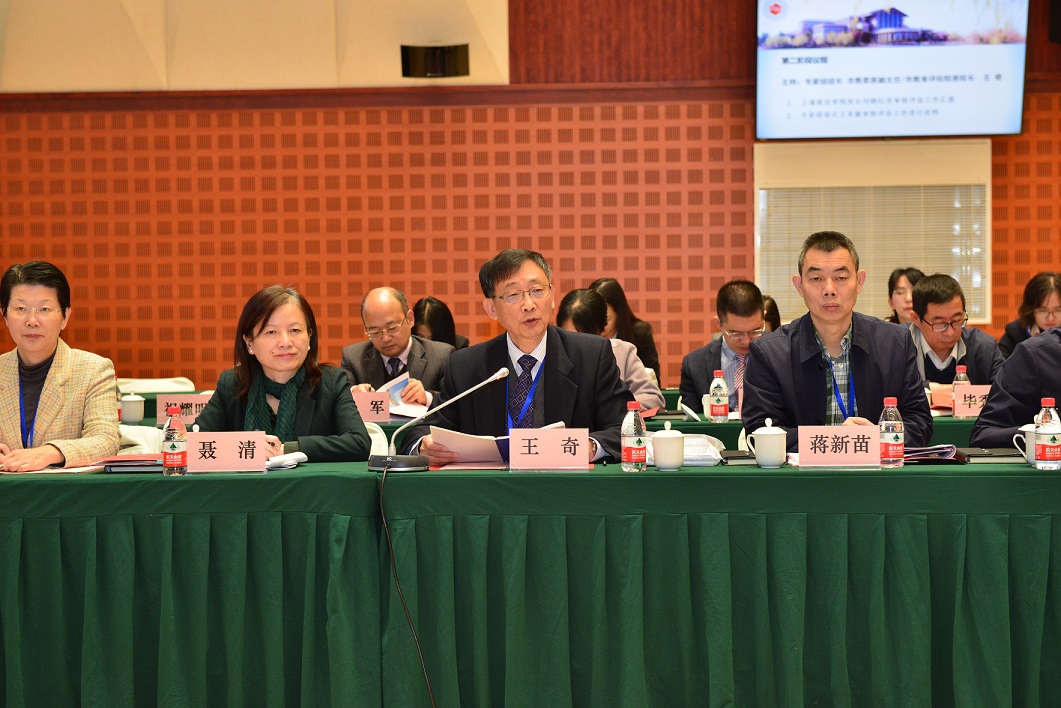 最后,王奇就此次审核评估的工作任务、工作方式和工作要求进行了说明。他指出,专家组的工作任务是按照教育部与上海市教委对于本科教学工作审核评估的工作要求,考察本科教学工作,帮助查找问题,提出改进教学工作、规范教学管理、提高教学质量的意见和建议,向评估机构和市教委提交考察评估报告。专家组的工作方式是专家组内部不对审核考察项目进行具体分工,每一位专家都独立从深度访谈、听课看课、查阅相关资料、考察实验室、走访校内外实训基地等多层面、多角度对学校进行全面考察体验,独立分析,形成独立的评价结果。教育部和市教委对专家组的工作要求是,对国家负责、为学校服务,与学校平等交流、相互合作,最终达到以评促建的目的,实现审核评估的初衷。他强调,专家组将本着对国家负责的精神,不忘初心、牢记使命,重点结合审核评估“五个度”的要求,从现状与历史的比较视角,从学校创新与守成的视角,从学校顶层设计与各院系部处贯彻落实的视角,从数据分析与现场教学、实训基地、企业实证的视角,从“教师的教”与“学生的学”的视角来综合考察分析我校本科教学工作的基本状况,坚持以人为本、总结经验、查找不足、建言献策,与学校一起,把审核评估工作做好。