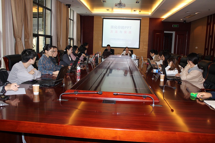 1022日上午,上海交通大学教师发展中心邢磊教授在综合研究中心101会议室为我校教师作题为“美化你的教学PPT”讲座。讲座由教师教学能力发展中心主办,来自二级学院的20多名教师参加。每位老师都自带笔记本电脑,进行现场实操。