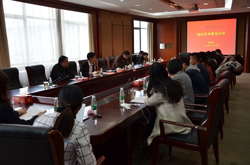 11月29日下午,我校组织员专题培训会在求实楼413会议室举办。华东政法大学党委组织员李家铭、上海体育学院党委组织员丁志刚到会指导。各党总支专兼职组织员近20人参加培训。