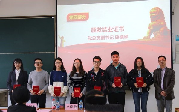 胡冠时宣读了培训班优秀学员名单并为学员代表颁发结业证书。李昂、黄毅杰、胡家宁等9位学员获得“优秀学员”称号。