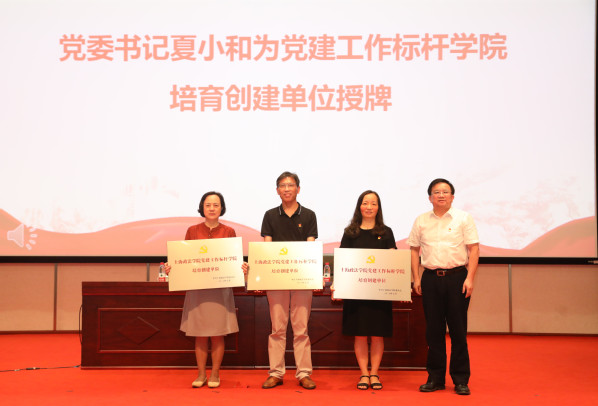 会议宣读了2020年市教卫党委系统党建研究课题成果获奖名单、2020年市教卫党委系统党建研究会立项课题名单、2020年市教卫党委系统统一战线调查研究与理论研究课题立项名单、新利18官方客服党建课题立项名单、学校第一季示范党课立项名单,十佳优秀组织生活案例、基层党建创新案例获奖名单,党建工作样板支部培育创建单位、“双带头人”教师党支部书记工作室、党建工作标杆学院培育创建单位名单。夏小和、刘晓红、潘牧天、胡继灵分别为获奖个人、集体颁发证书、授牌。