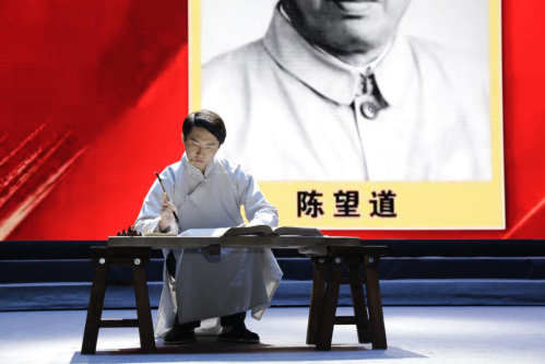 情景剧《真理的味道》拉开了“忆往昔峥嵘岁月,守初心砥砺前行”篇章的序幕,全场师生一起倾听了一位坚定的马克思主义传播者、践行者和坚守者——陈望道与马克思主义初次结缘的小故事。马克思主义学院党总支书记徐俊峰在党课中讲到,近百年来中国的发展变化早已证明,中国共产党的领导是历史的选择、是人民的选择。回首过去,中国共产党紧紧依靠人民,跨过一道又一道沟坎,取得一个又一个胜利,为中华民族作出了伟大历史贡献。歌舞《走向复兴》生动演绎了中国共产党人披荆斩棘、百折不挠,努力实现中华民族从站起来、富起来到强起来的伟大历程。