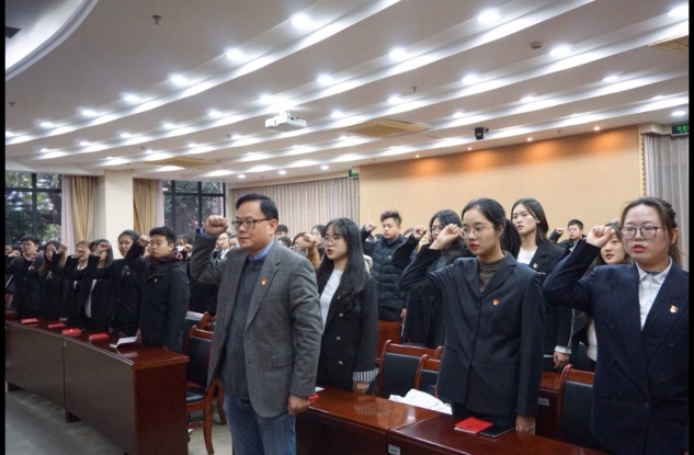 1月5日下午,经济管理学院2020年下半年预备党员入党宣誓仪式在综合中心107举行。经济管理学院党总支书记周毅、党总支副书记徐海琨、专职组织员徐璐,学生党支部书记陈雪婷、付悦,党支部副书记覃煜、学生党建中心主任胡涬和2020年下半年发展的全体预备党员参加了本次入党宣誓仪式。