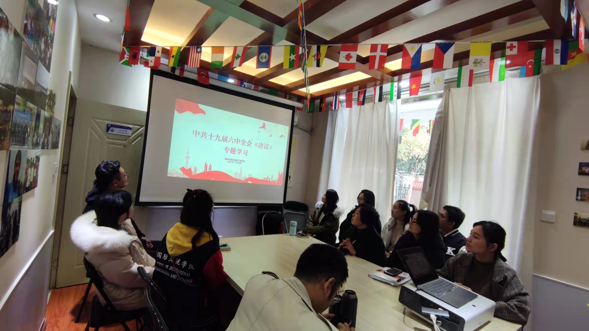 11月30日,国际交流学院党总支组织全体教师党员开展十九届六中全会精神专题学习会。