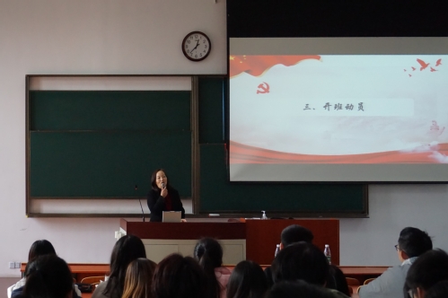 连淑芳作开班动员讲话。她提出了三点要求:第一,青年人肩负着中华崛起的重任,要将理想信念与共产主义理想结合在一起,珍惜学习机会、树立理想信念;第二,知行合一,学有所成。希望学员们在学习理论知识的时候积极联系自身学习生活实践,在生活中发挥积极作用;第三,尊师守纪,接受锤炼。入党积极分子培训班课程不仅是基础知识的培训,更是一次党性锻炼。希望全体学员认真学习本次培训班的课程内容,不断坚定理想信念,认真学习,服从组织管理。