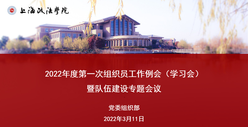 本次会议分学习会、工作例会、队伍建设专题会三个阶段进行。会上,党委组织部李洋带领全体与会人员学习了习近平总书记在中央党校(国家行政学院)中青年干部培训班开班式上的重要讲话精神,并传达了上海市组织部长会议精神。国际法学院党总支专职组织员周楷、刑事司法学院党总支专职组织员秦雪做了工作交流发言。经济管理学院党总支专职组织员徐璐介绍了2022年度学校党建服务中心工作计划。张东霞结合3月份学校党建工作重点任务,重点解读部署了2022年度学校组织工作、统战工作要点。