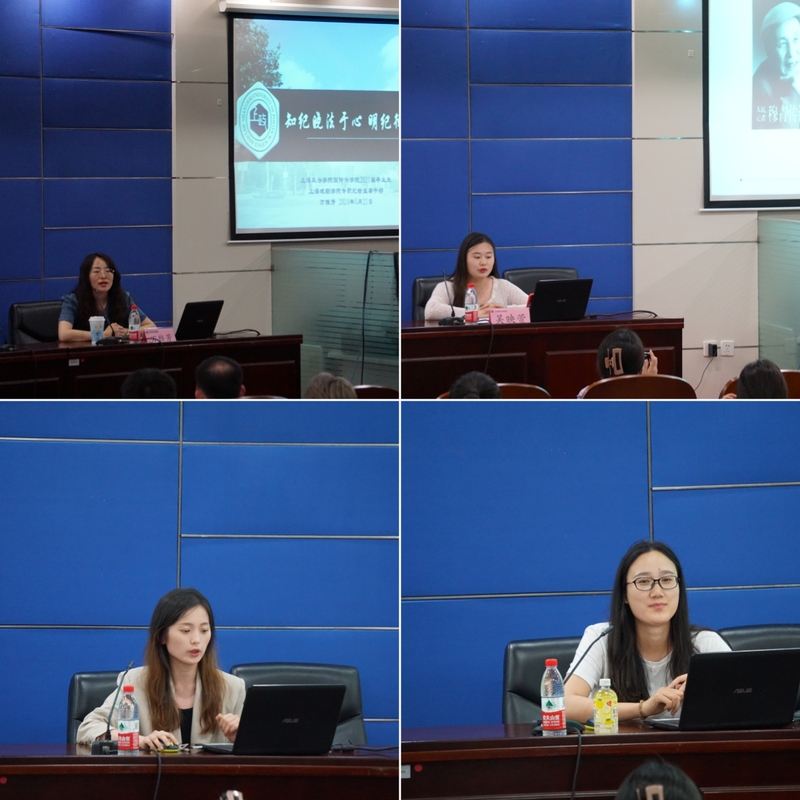 上政第14学生党支部书记吴映萱、上政第15学生党支部书记张妍和上政第13学生党支部书记于晓艳先后讲授了《向先进党员学遵纪》《严明党的政治纪律,全面加强党的纪律建设》和《不忘初心,遵纪守纪》专题党课。